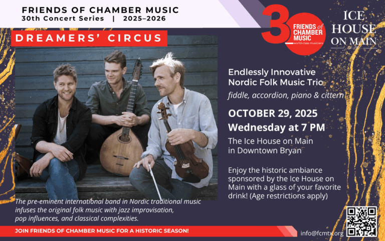 Friends of Chamber Music presents Dreamers’ Circus, the pre-eminent international band in Nordic folk music. An award-winning trio of classically trained and endlessly innovative Scandinavian musicians infuses the original […]